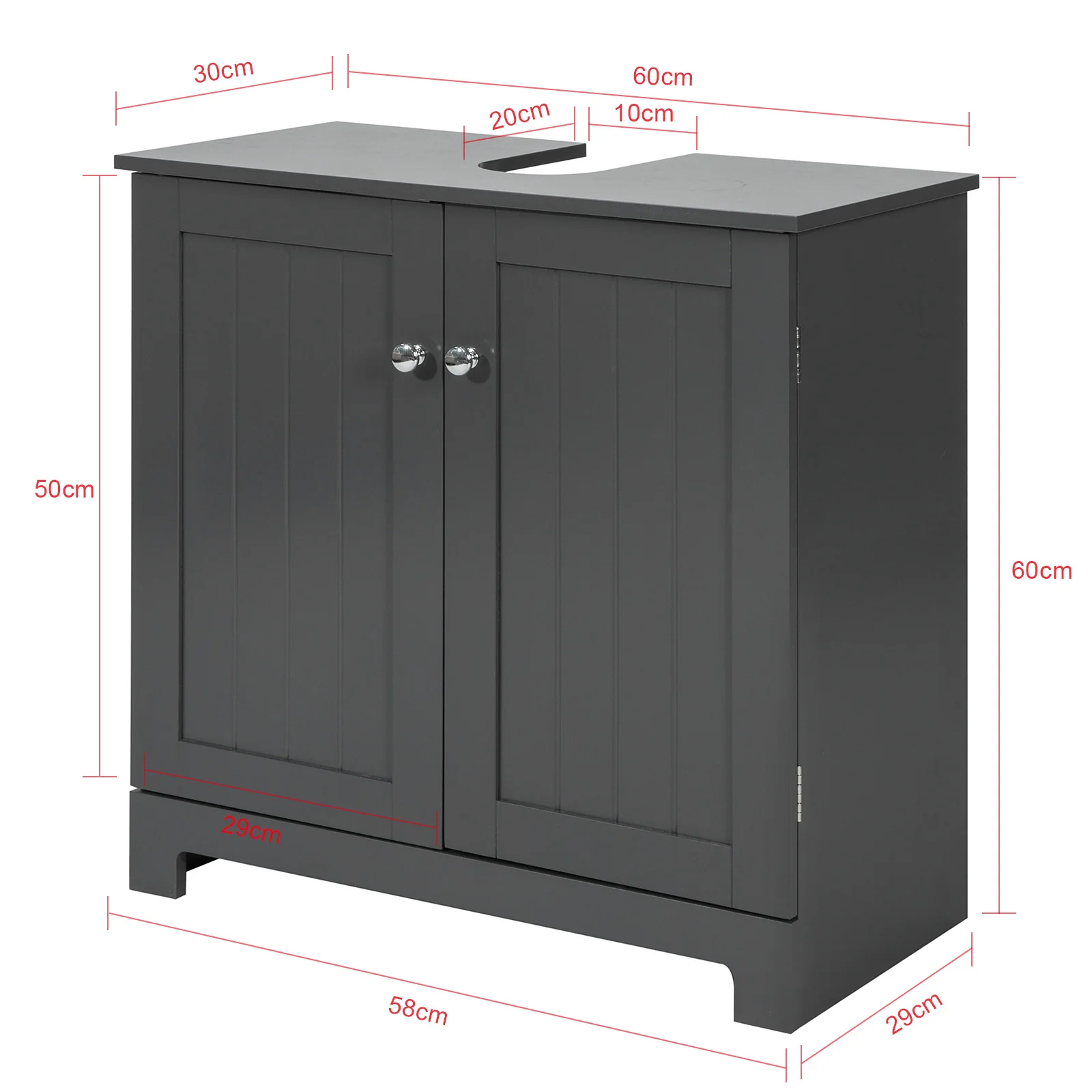 - Tamaño-60(Ancho)x30(Fondo)x60(Altura)CM. El tamaño del hueco para el sifón es de 10(Ancho)x20(Fondo)cm.