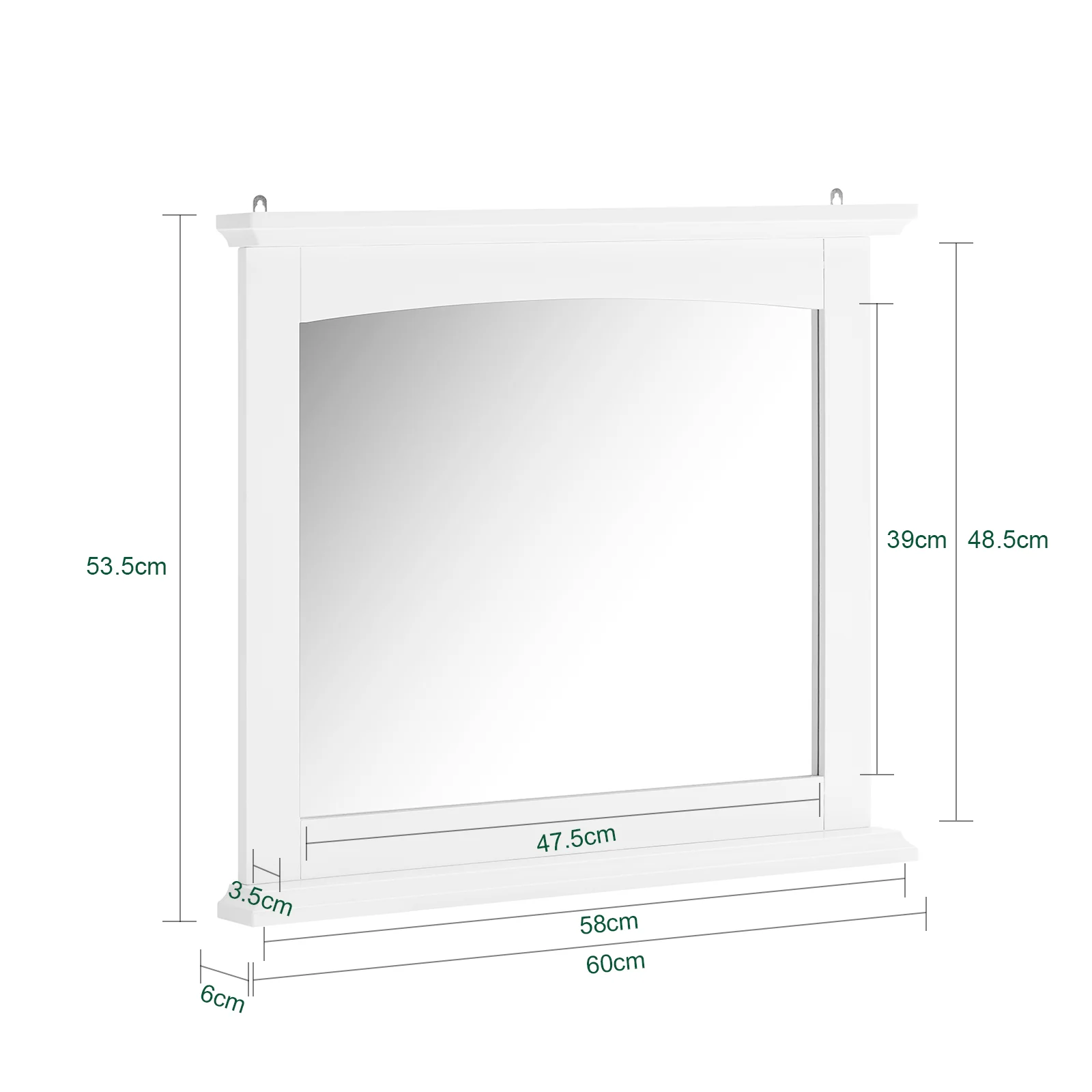 - [Práctico armario espejo con estante]: Este armario de baño pared (60x6x53,5cm) combina un espejo funcional con una balda integrada, ideal para cepillos de dientes, cremas o pequeños accesorios de baño.
