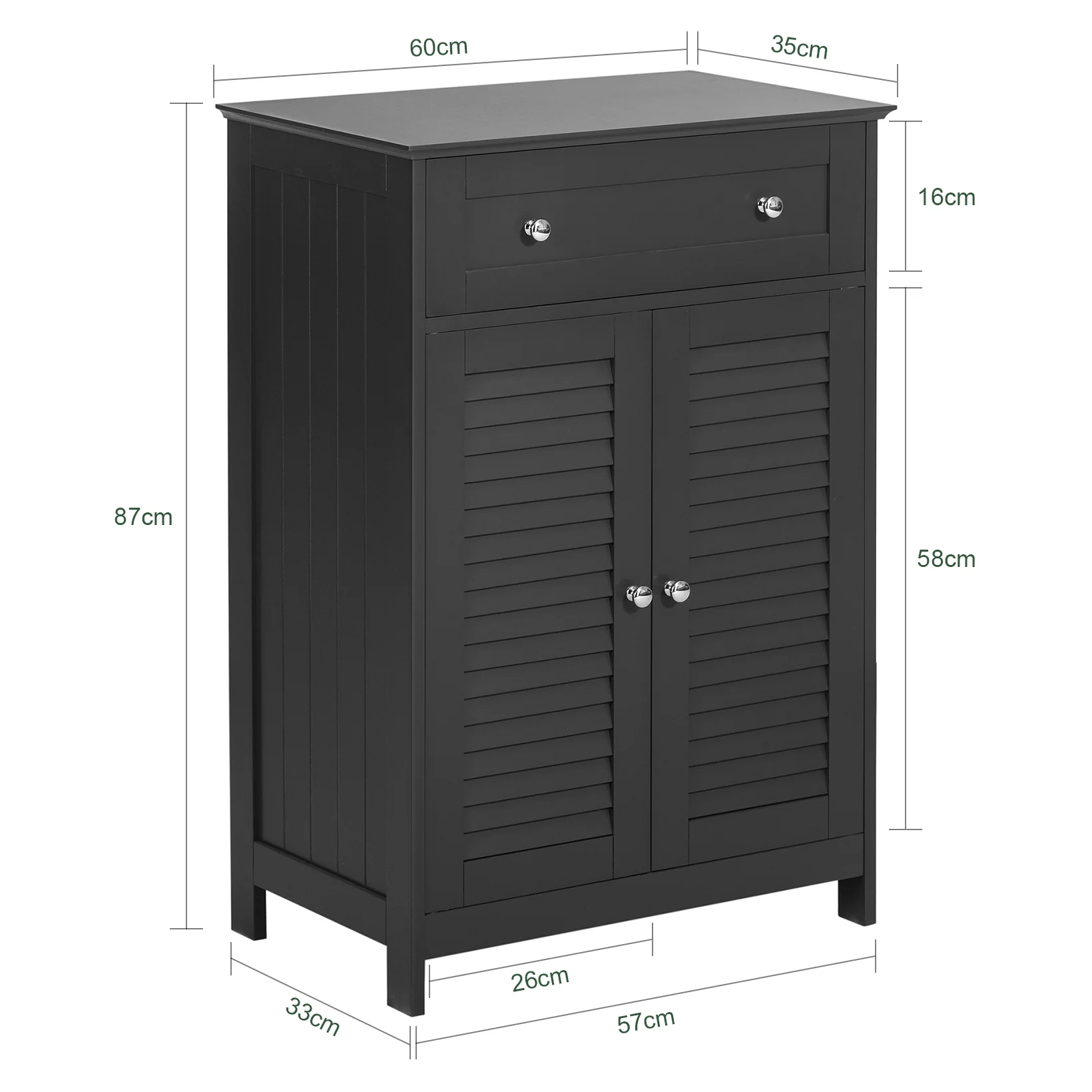 - Material: Madera MDF tableros de partículas. Dimensiones (ancho x ancho x alto): 57x33x87cm. Máxima capacidad : 35 kg. Peso de envío: 15 kg. Dimensiones del embalaje: 93x41x17cm