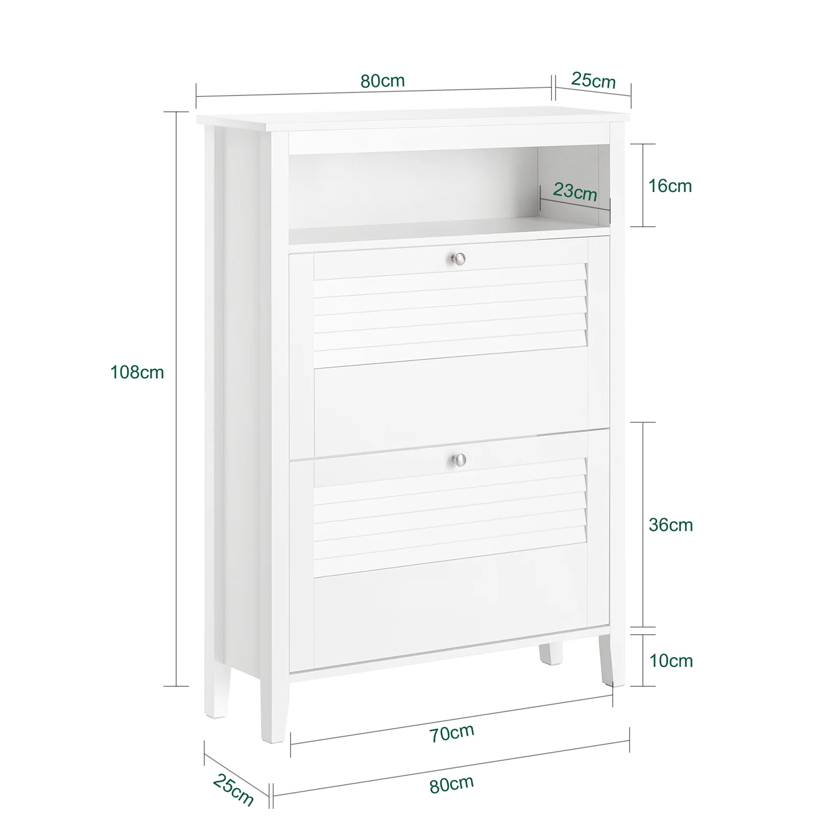 SoBuy FSR152-W Zapatero Estrecho con 2 Solapas y 1 Estante Abierto Blanco
