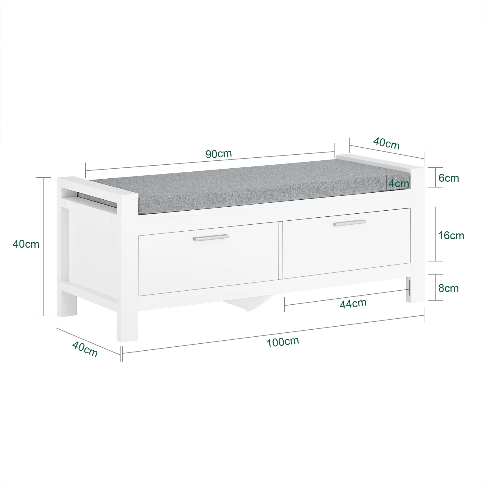 SoBuy FSR74-W Zapatero Banco con pie con 2 cajones Blanco