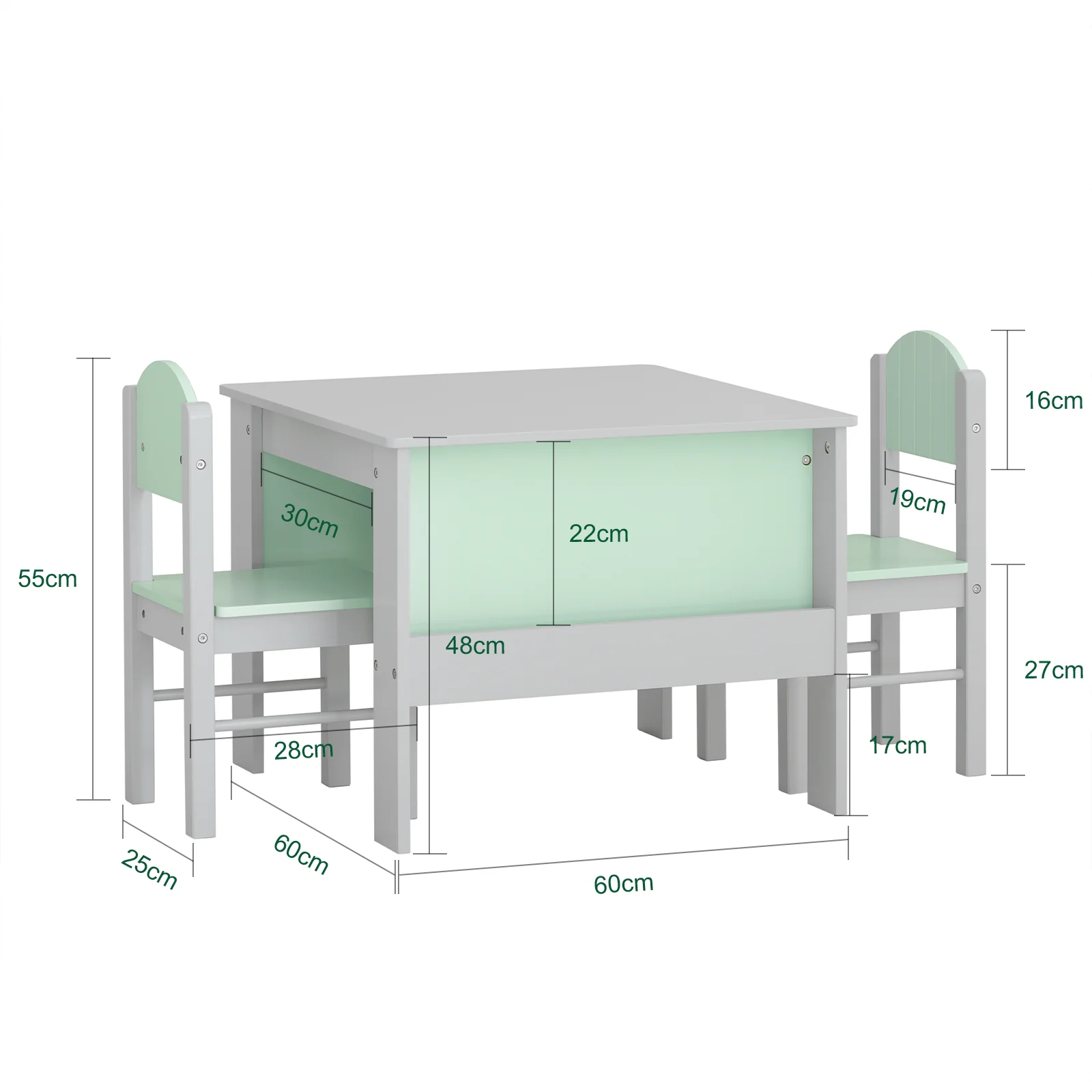 SoBuy KMB88-HG Juego de Mesa y 2 Sillas Infantil Muebles para niño Gris y Verde