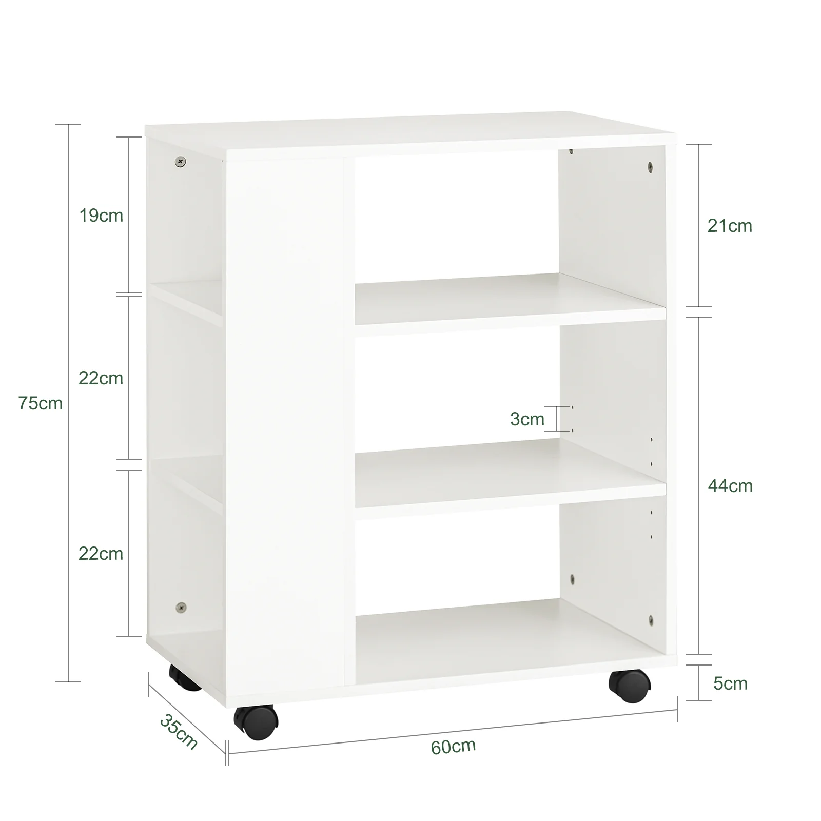 SoBuy FBT68-W Mesa Auxiliar con 4 Ruedas y 3 Estantes Blanco
