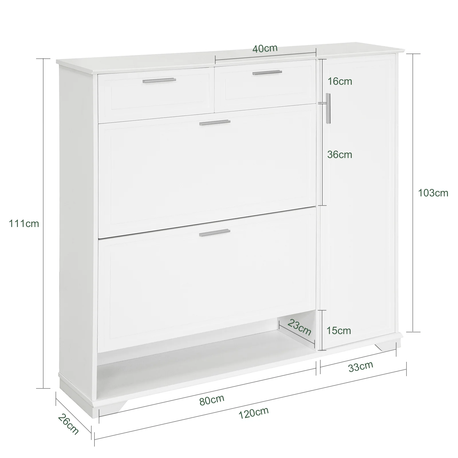 SoBuy FSR104-W Zapatero con 2 solapas Armario Multifuncional para Entrada Blanco