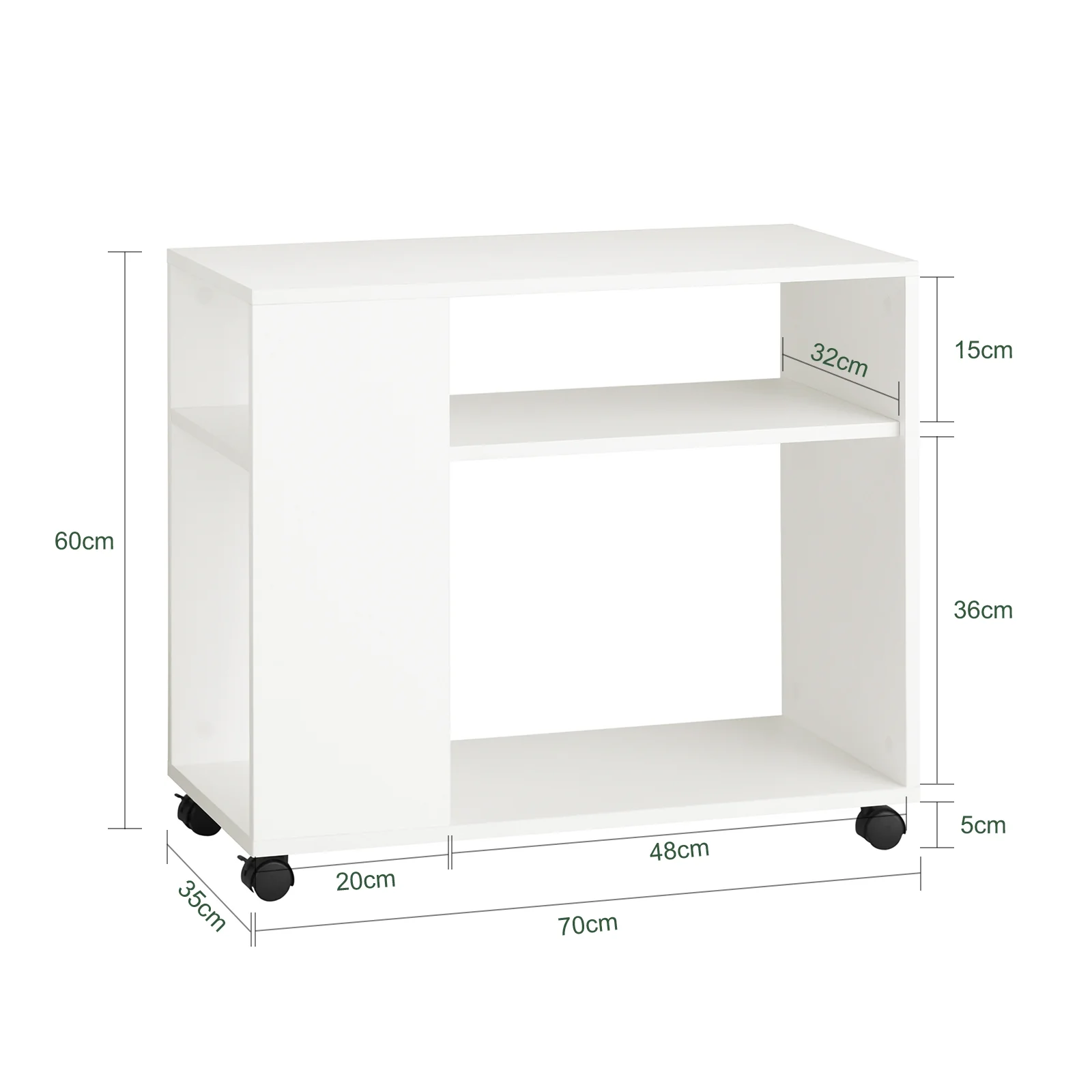 - Material: Top en melamina. Dimensiones: L70cm x H60cm x P35cm. Capacidad máxima: 10 kg/estante, Peso del envío: 12,5 kg.